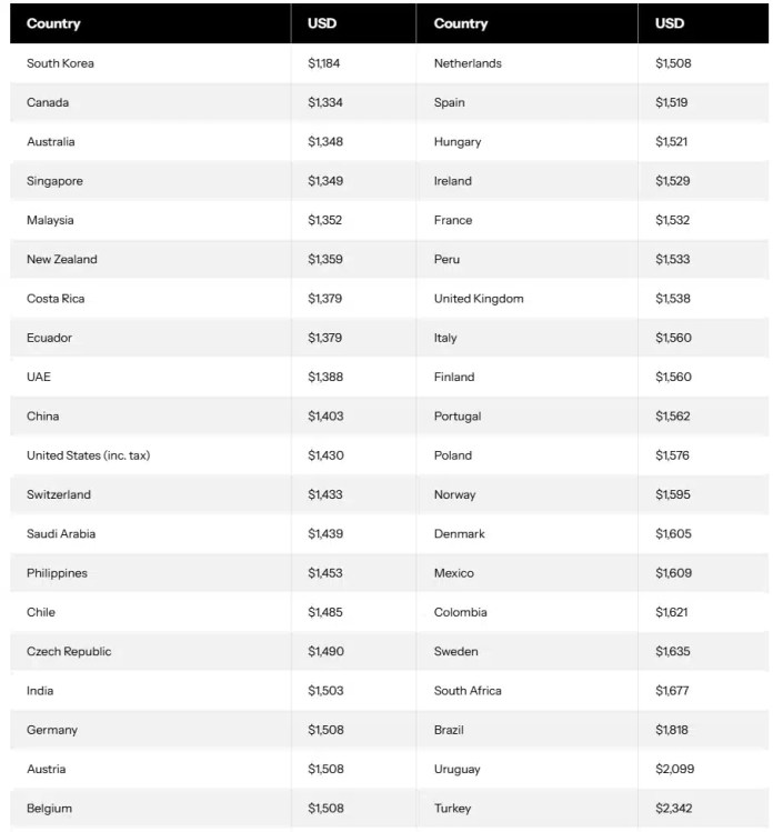 Турция е страната, в която Galaxy S25 Ultra ще струва най-скъпо. Там смартфонът се предлага приблизително за 2342 долара. Това също се отнася не само за новите устройства на Samsung — страната има високи данъци върху вноса, висок данък върху добавената стойност и други такси, които се налагат на търговците на електроника. Трябва да се отбележи също, че нерезидентите на всички тези страни могат да кандидатстват за възстановяване на данъка, който е включен в цената на смартфона — на летището или след завръщане у дома. При този сценарий крайната цена може да е доста приемлива.