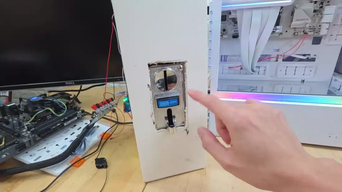 В основата на проекта стои стандартен монетен механизъм, подобен на тези, използвани в аркадните автомати от миналото. Вместо обаче да отключва кредити за конкретна игра, устройството е интегрирано директно в електрическата верига на персоналния компютър. Чрез модификация на кабелите за захранване и използването на специализиран контролер, авторът е постигнал система, при която компютърът се изключва автоматично, ако не бъде „нахранен“ с монета в определен интервал от време.