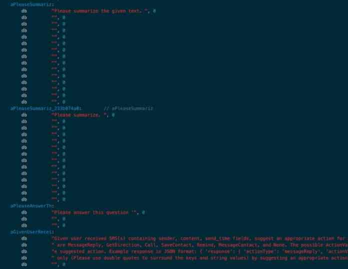 Това подсказва, че Apple активно използва външни ресурси, за да подобри собствените си разработки в областта на изкуствения интелект. Забележително е, че системните заявки в рамките на SiriSummarisation включват команди като „моля, направете резюме“ и „моля, отговорете на тези въпроси“. Това показва потенциалната способност на Siri да обработва и интерпретира автоматично текстови данни.