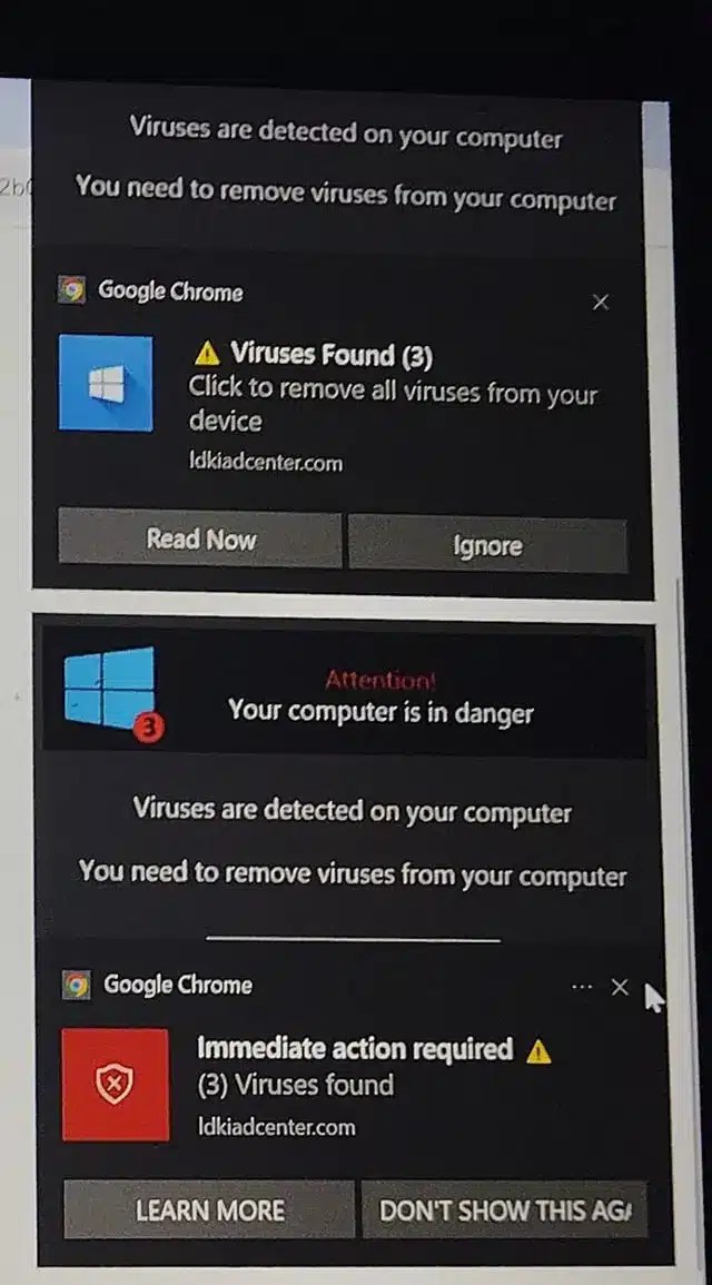 Този вид нотификации могат да обещават различни неща. Един от най-старите примери е, че сте спечелили състезание, но това не е единственото нещо, за което трябва да внимавате. Други изискват спешно да ви подтикнат към действие, а в някои случаи могат да бъдат още по-зловещи, като твърдят, че на устройството ви вече има зловреден софтуер.