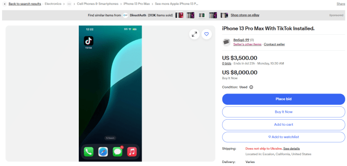 В деня, в който социалната мрежа беше блокирана, в eBay и други американски пазари започнаха да се появяват странни реклами, които искат до 1 милион долара за не особено нови iPhone. Както се оказа, регионалните ограничения не важат за старите версии на iOS и TikTok беше доста функционален там.