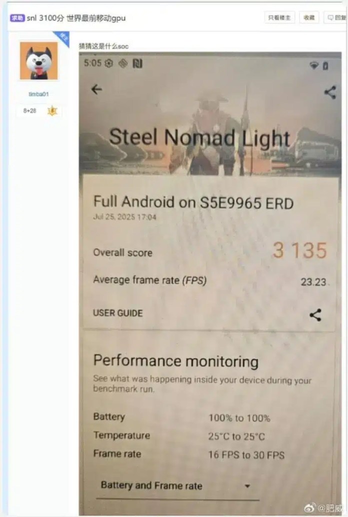 Според нов информационен теч, Exynos 2600 постига 3135 точки в 3DMark Steel Nomad Light, което е с около 18% повече от най-мощните смартфони, базирани на Snapdragon 8 Elite. В същото време, заслужава да се споменат и предварителните резултати на Snapdragon 8 Elite 2, за който се говори, че ще демонстрира с 20% по-висока производителност от Elite от първо поколение. На този фон резултатът на Exynos 2600 не изглежда толкова впечатляващ.