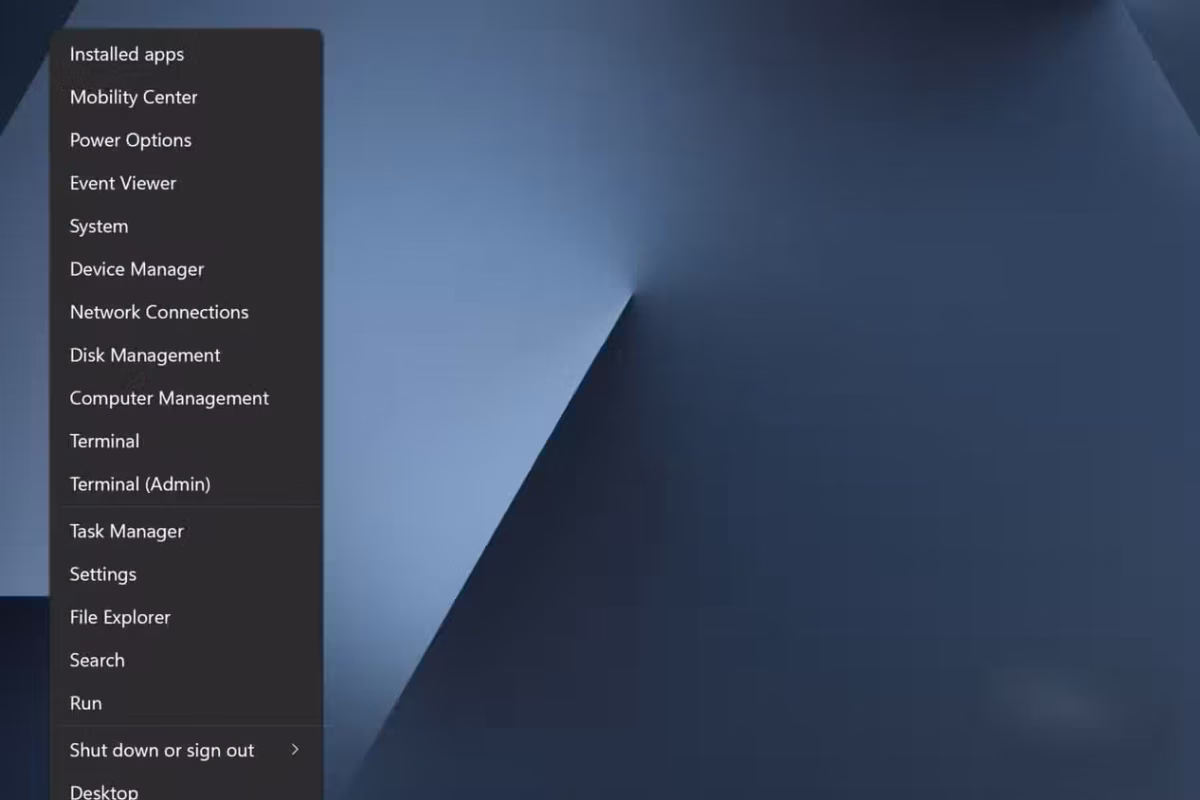 - Ако сте с Windows 11, изберете Terminal (Admin). В Windows 10 вместо това изберете Windows PowerShell (Admin).