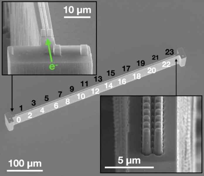 Изследователите показаха, че силициевият диелектричен лазерен ускорител (DLA) може едновременно да ускорява и насочва електроните. Това предлага създаването на фокусиран сноп от високоенергийни електрони.
