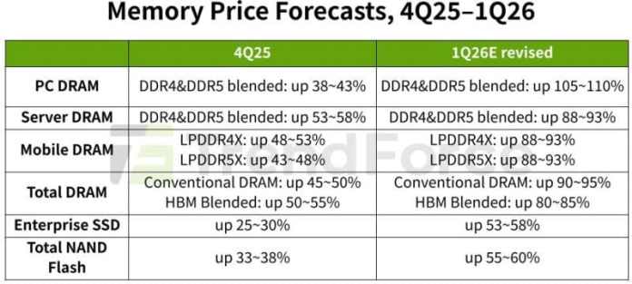 С настъпването на февруари експертите на TrendForce стигнаха до заключението, че прогнозата за динамиката на цените на чиповете памет, която направиха през четвъртото тримесечие не отразява реалната ситуация на пазара и следователно трябва да бъде коригирана в посока нагоре, и то много чувствително.