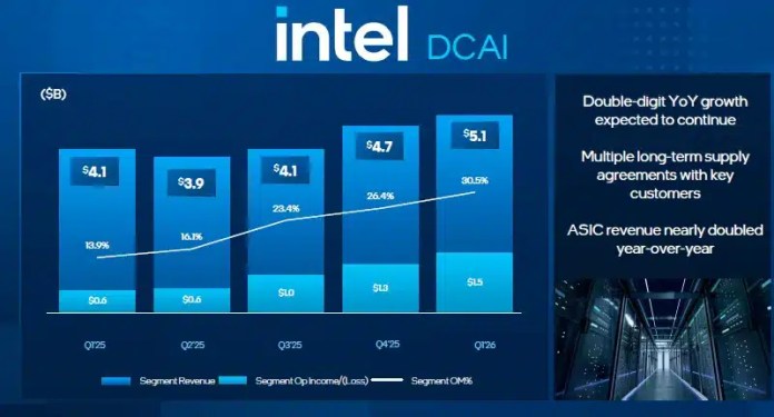 В сегмента на центровете за данни приходите на компанията през първото тримесечие са нараснали с 22% до 5,1 млрд. долара. По същество над 40% от общите приходи на Intel са дошли именно от продуктите за сървъри, въпреки че сегментът на персоналните компютри все пак е осигурил 7,7 млрд. долара приходи през първото тримесечие, като е отбелязал ръст от 1,3%. Търсенето се концентрира върху централните процесори до голяма степен, благодарение на пренасочването на фокуса към задачите по инференс в областта на AI.