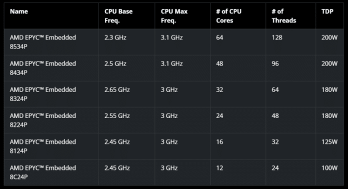 Процесорите EPYC Embedded 8004 разполагат с компактен SP6 форм-фактор, който е с 19% по-малък от EPYC Embedded 9004. Жизненият цикъл на чиповете е седем години.