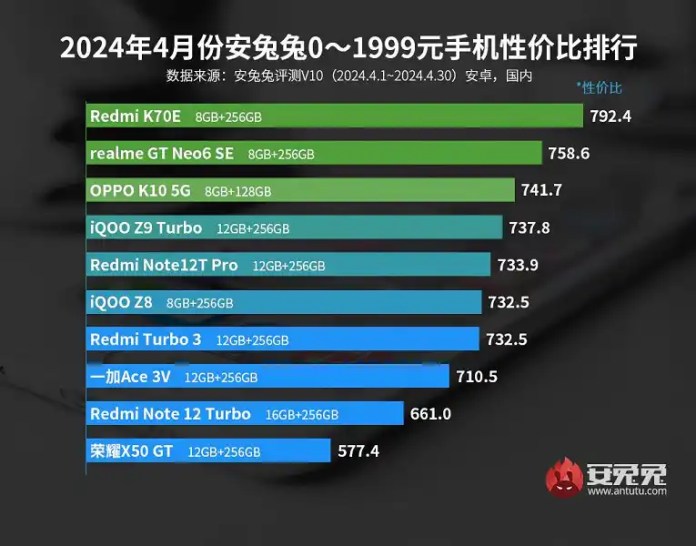 AnTuTu обяви най-добрите смартфони по отношение на съотношението цена/производителност. Redmi K70E и Redmi K70 Pro са лидери в своите категории