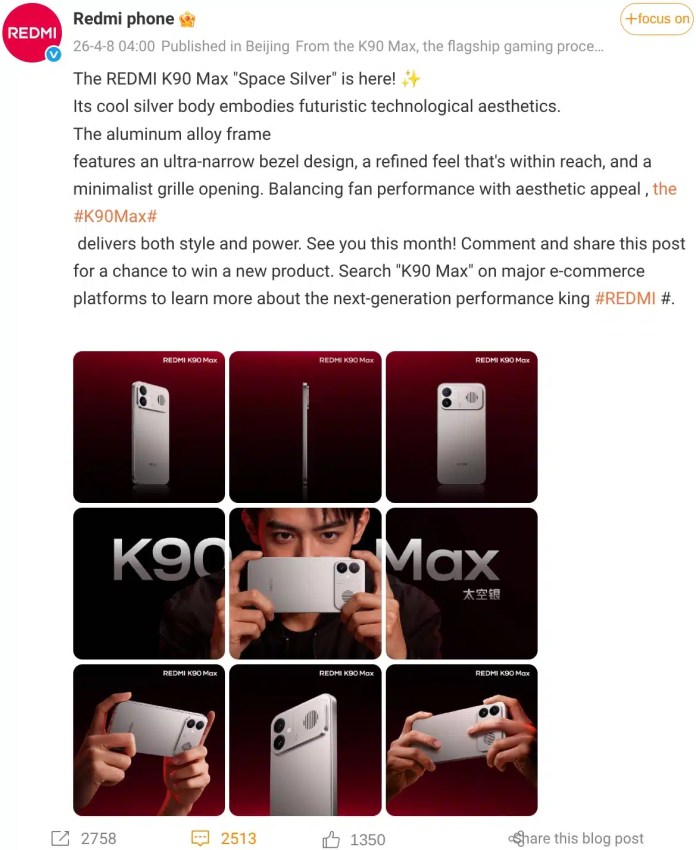 След като потвърди пускането на Redmi K90 Max в Китай, компанията разкри официалния дизайн на телефона в Weibo, заедно с някои спецификации. Redmi потвърди, че ще представи Redmi K90 Max заедно с Redmi K Pad 2, подробности за които бяха обявени вчера. Redmi представи дизайна на цветовия вариант „Space Silver“ на K90 Max в Weibo. […]