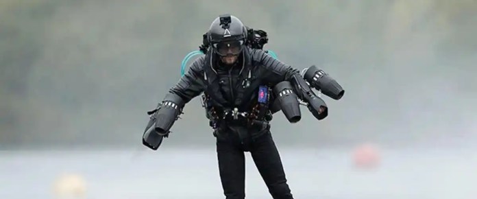 Ричард Браунинг, основател на Gravity Industries, публикува видеоклип в мрежата TikTok с кадри от тестването на реактивна раница с огнестрелно оръжие на рамото. Оръжието се изстрелва въз основа на сигнал от сензори за насочване, разположени в шлема на пилота, вероятно самия Браунинг. Той се издига на няколко метра от земята и произвежда няколко изстрела във водата, без да губи равновесие. Цевта на оръжието се завърта, за да следва главата му със съвсем леко закъснение.