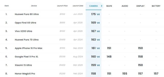 DXOMARK определи Huawei Pura 80 Ultra за шампион в областта на камерите. Той изпреварва телефоните с най-добрите камери като OPPO Find X8 Ultra и Vivo X200 Ultra.