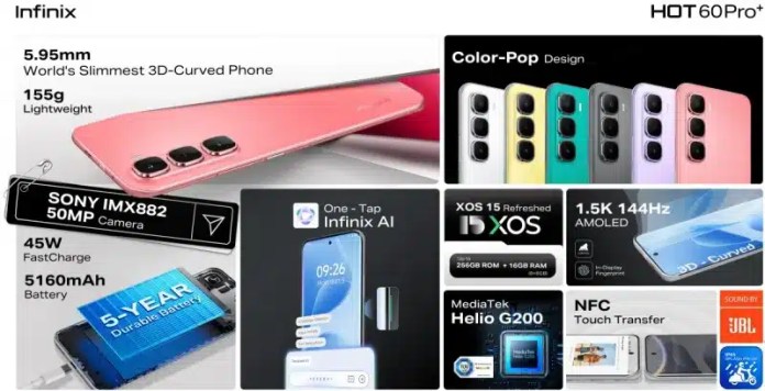 Infinix обяви началото на глобалните продажби на смартфоните от серията Infinix Hot 60. Серията включва моделите Hot 60 Pro+ и Hot 60 Pro, анонсирани в началото на юли, както и Hot 60i и Hot 60 5G.