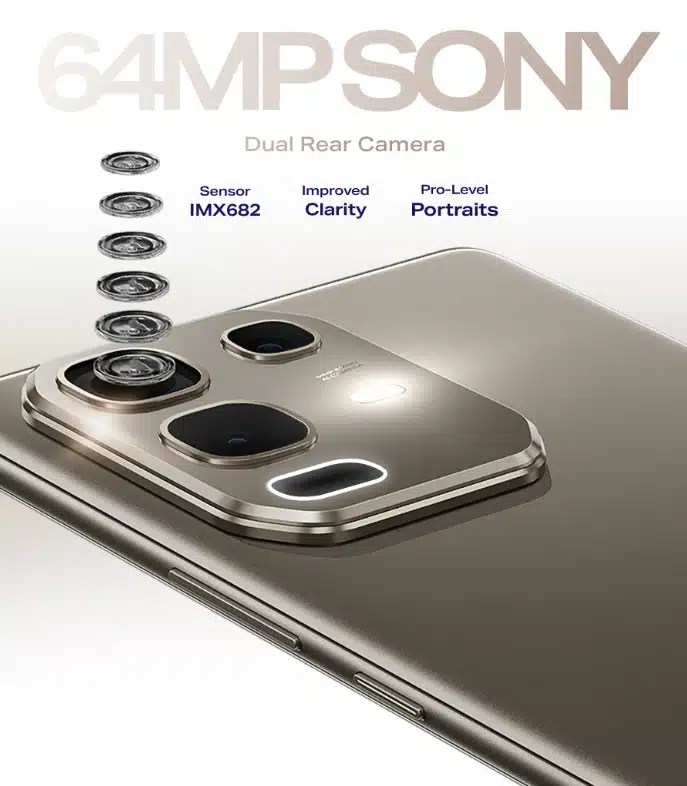 Официалният тийзър, наличен на страницата на Infinix Note 50s във Flipkart, разкрива, че той ще разполага с двойна камера, оглавявана от 64-мегапикселовоят оптичен сензор Sony IMX682. Телефонът ще поддържа запис на 4K видео с 30 кадъра в секунда.