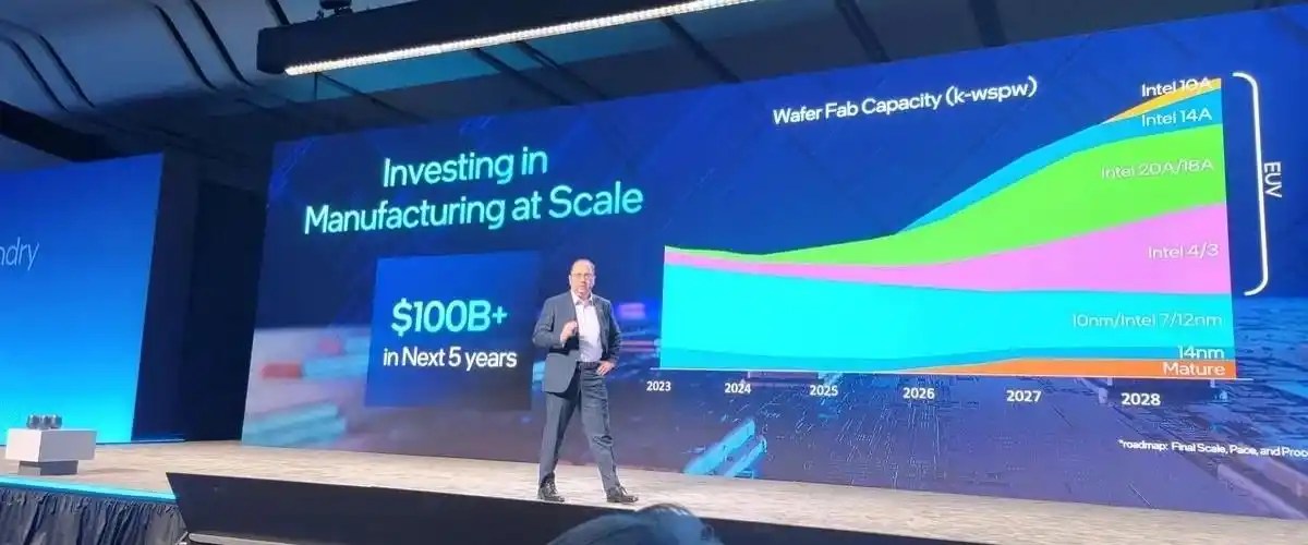 Компанията разкри плановете си по време на събитието Intel Foundry Direct Connect. Стана ясно, че процесорът Intel 10A (1nm процес) ще започне да се произвежда в края на 2027 г., отбелязвайки първия 1nm нод на компанията. През следващите пет години Intel възнамерява да инвестира 100 млрд. долара за разширяване на производствения капацитет и изграждане на нови заводи. Компанията също така работи за създаването на напълно автономни фабрики, базирани на изкуствен интелект. Роботите ще започнат да работят на монтажната линия заедно с хората. Малко по-късно в цеховете ще останат само роботи.