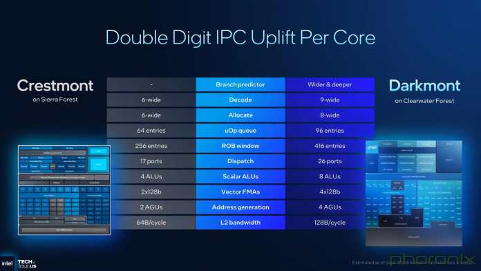 - До 288 E-ядра (два пъти повече от предшествениците от серията Sierra Forest);