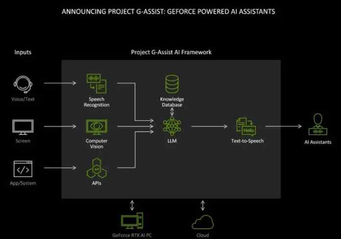Project G-Assist приема гласови или текстови команди от играча, както и контекстна информация от екрана, и управлява тези данни чрез модели на компютърно зрение. Тези модели подобряват контекстуалната осведоменост и специфичното за приложението разбиране на големия езиков модел (LLM), свързан с базата от знания на играта. В крайна сметка системата генерира персонализиран отговор под формата на текст или говор.