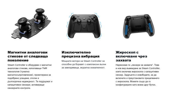 По ваше усмотрение Steam Controller може да се настрои в приложението Steam Input Configurator. Според Valve, при стартирането на продажбите за Steam Controller ще бъдат достъпни предварително инсталирани конфигурации за управление за хиляди игри. Те са създадени с подкрепата на общността на Steam Deck. Също така ще можете да създадете своя собствена конфигурация и да я споделите.