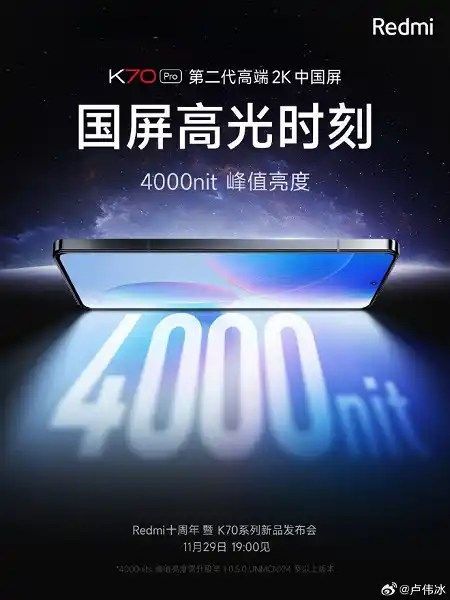 Представянето на смартфона Redmi K70 Pro е обявено за 29-ти ноември тази година.